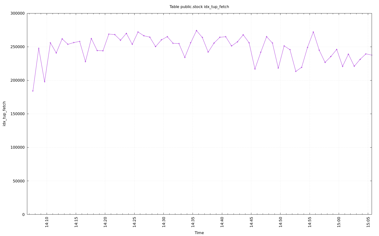 Database Test 2 Table idx_tup_fetch Charts